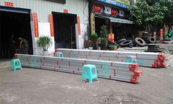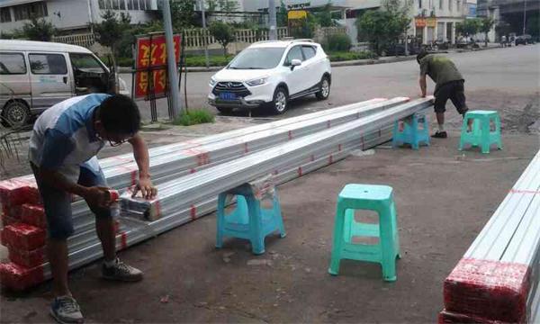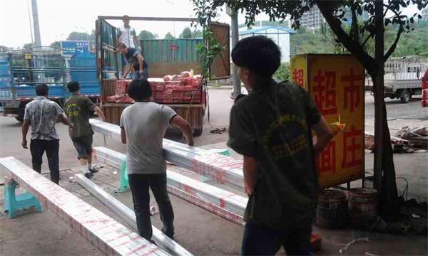 一捆捆打好包的鋁型材整齊的放置在地,等待裝車。  小伙伴們配合默契,齊心協(xié)力搬運鋁型材。