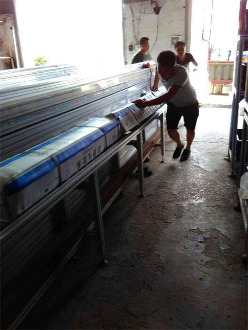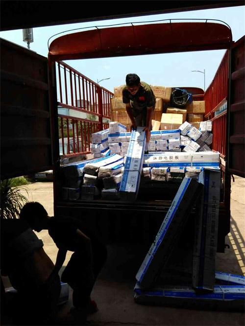 經(jīng)過小伙伴們的辛勤努力,防靜電膠皮整齊的擺放在倉庫的一角。
