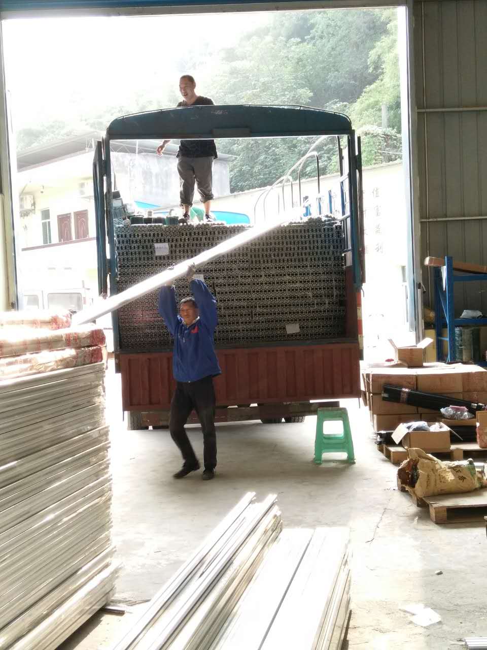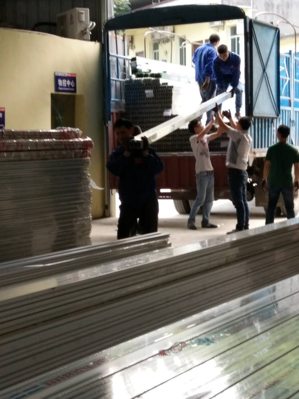 匯利興戰(zhàn)士齊心協(xié)力一同卸下鋁型材,滿大車的鋁型材轉(zhuǎn)間就轉(zhuǎn)移至倉庫。(團(tuán)結(jié)就是力量)