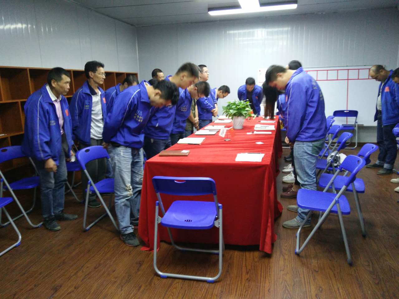 在會議召開前夕,匯利興人集體對企業(yè)三道(人道、孝道、商道)進行了三鞠躬,在鞠躬的同時每個匯利興人面孔都是端重而嚴肅得。(因為這是匯利興人對自己對家人對客戶對企業(yè)一種負責的態(tài)度)。