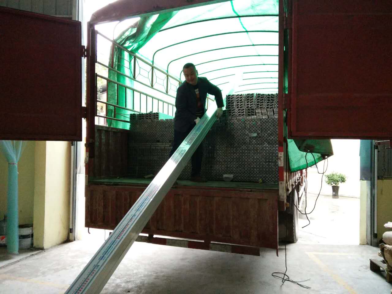 匯利興戰(zhàn)士兩人為一組合,進(jìn)行鋁型材搬卸