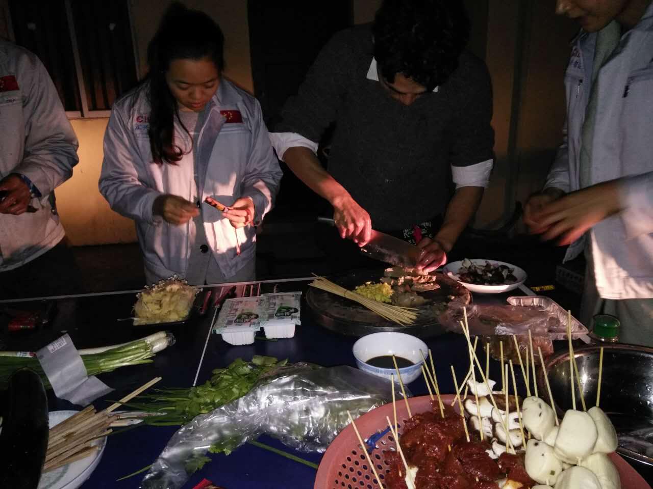 大家默契十足、分工合作,一個洗菜一個切菜、一個燒烤一個添加調(diào)料