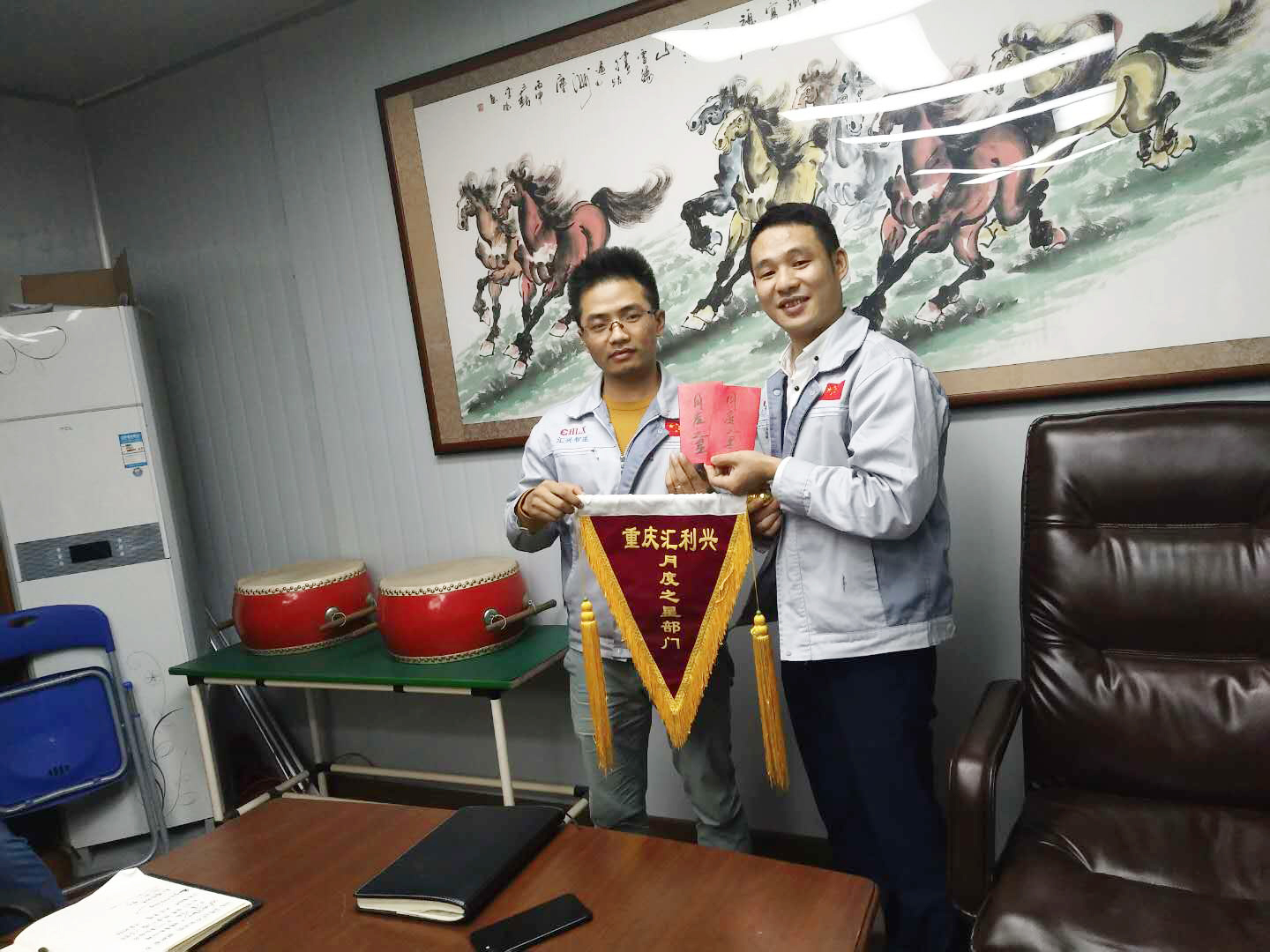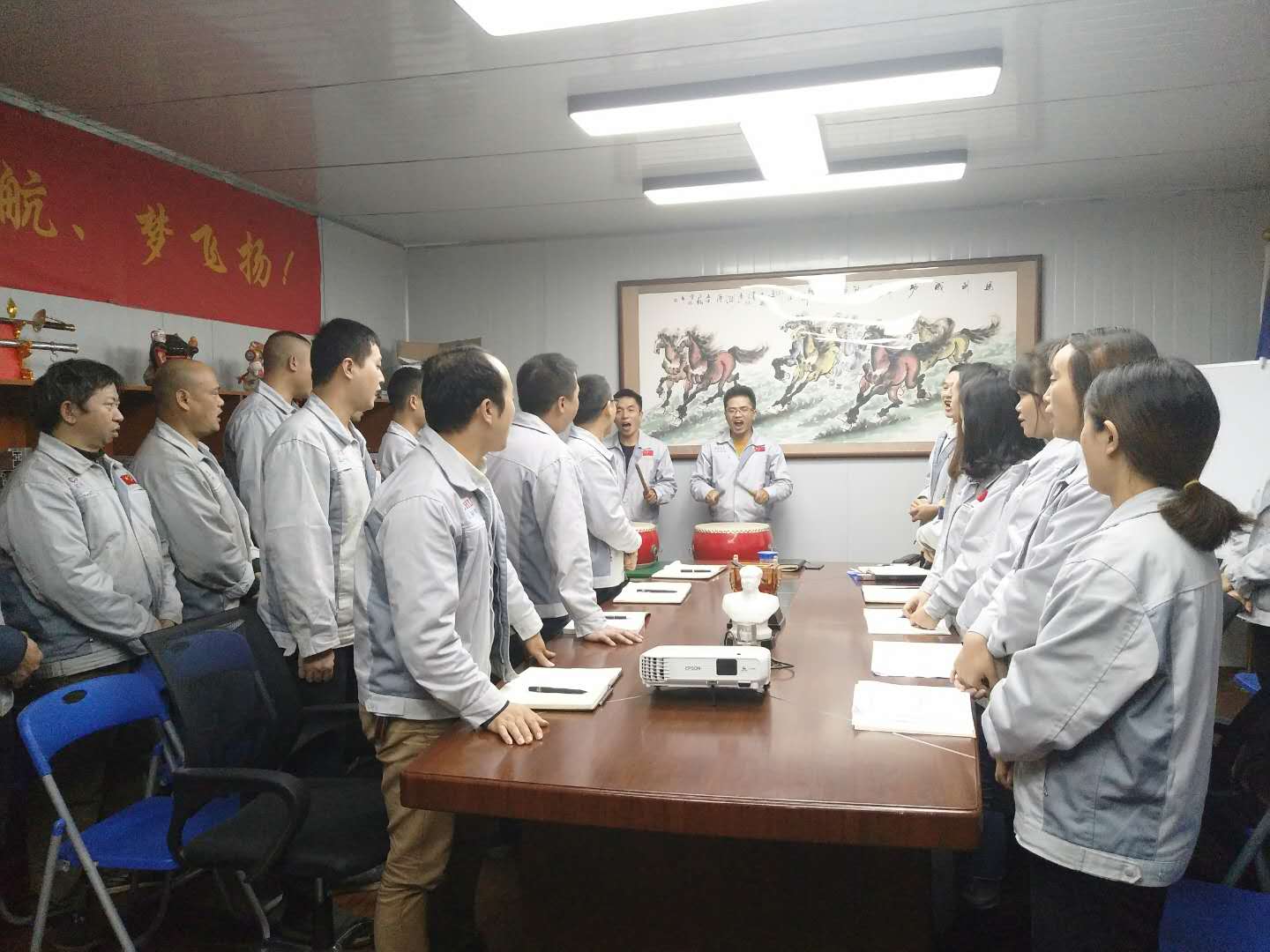 依次估稱簽到入場(chǎng) 會(huì)議召開(kāi)前,大家依次對(duì)企業(yè)三道(人道、孝道、商道)行三鞠躬,并督促我們應(yīng)時(shí)刻感謝自己、感謝父母及我們的合作伙伴;同時(shí)進(jìn)一步也敲響了匯利興士氣鼓,士氣比武器更重要進(jìn)而不斷的鼓舞自己鞭策自己,隨后會(huì)議正式開(kāi)始。 敲擊士鼓,士氣比武器更重要 會(huì)上,首先由張副總對(duì)十月份做相應(yīng)總結(jié),談到部門(mén)之間的配合度及個(gè)人對(duì)于崗位的付出,并表示隨著時(shí)間的增移我們需加快自己的腳步緊追我們的目標(biāo);其次每月度之星及部門(mén)的選舉和頒發(fā)獎(jiǎng)金;然后胡總做會(huì)議的總結(jié),談到各部門(mén)及先進(jìn)個(gè)人的年度總結(jié)進(jìn)而也盼望及希望每個(gè)人能更加努力、用心拼搏并在夢(mèng)想及目標(biāo)的道路上,一路披荊斬棘、奮勇向前毫不退縮。 張副總發(fā)言講話示意圖 如果說(shuō),有一種力量可以讓人堅(jiān)韌不拔,那便是團(tuán)隊(duì)的力量;如果說(shuō)有一種力量可以讓人心頭一暖,那便是團(tuán)隊(duì)的力量。大家相聚一起互助友愛(ài)、努力奮斗,用最貼切的關(guān)懷及行動(dòng)來(lái)表達(dá)對(duì)同事間的關(guān)愛(ài)和對(duì)工作的付出從未求回報(bào),而他們就是此次榮獲月度之星的“張副總”和月度部門(mén)“銷售部”。在此感謝他們的奉獻(xiàn)及付出同時(shí)在此祝賀他們,進(jìn)而也希望他們?cè)诖撕蟮穆烦躺夏芨优Α?/span> 雙星代表人“張副總”(圖左)與“胡總”(圖右)進(jìn)行合影