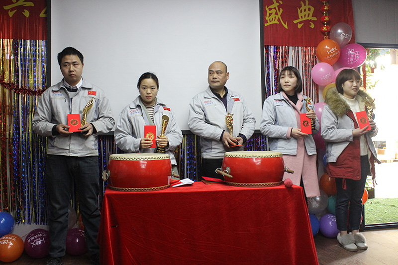 時(shí)光荏苒,歲月如梭?;仡?017年,我們無(wú)比自豪,展望2018年,我們信心百倍。新的一年,新的目標(biāo),新的征程,不忘初心、奮發(fā)圖強(qiáng)、創(chuàng)造輝煌。 會(huì)議主題:新征程、新跨越、新作為,積極向上,開(kāi)源節(jié)流,倍增業(yè)績(jī)!在2018年2月3日下午13時(shí),匯興家人齊聚在匯利興學(xué)校隆重舉行2017匯利興年度會(huì)議盛典會(huì)議主持人:石樂(lè)歡 團(tuán)結(jié)就是力量,這力量是鐵,這力量是鋼......伴隨著激情高昂的歌唱聲及匯興家人的共同心聲緩緩從竹林小道入場(chǎng)了。緊接著家人們?cè)诤飞侠酉伦约旱氖种赣。⒁庵鴧R興家人們堅(jiān)韌不拔,奮勇當(dāng)先,自強(qiáng)不息,團(tuán)結(jié)協(xié)作的精神品質(zhì)。 匯利興家人緩緩進(jìn)入竹林小道圖 匯利興家人緩緩進(jìn)入竹林小道圖2 俗話說(shuō)“四方進(jìn)寶、八方來(lái)財(cái)”,開(kāi)場(chǎng)由客服部四大美女帶來(lái)“抓錢舞”的精彩表演,由此整個(gè)會(huì)議正式拉開(kāi)序幕?!叭说?、孝道、商道”是匯利興一直以來(lái)遵循的職業(yè)道德,開(kāi)場(chǎng)對(duì)其進(jìn)行三鞠躬來(lái)表達(dá)我們匯興人的職業(yè)道德。用情做人、用心做事的企業(yè)文化深入人心;忠誠(chéng)團(tuán)結(jié)、勤奮進(jìn)取的團(tuán)隊(duì)精神讓我們一次又一次的面對(duì)困難而挑戰(zhàn)成功,就像我們匯利興之歌中所說(shuō)的(相信我們會(huì)創(chuàng)造奇跡),我們一起努力、我們永遠(yuǎn)珍惜,成長(zhǎng)歲月里,我們是團(tuán)結(jié)的集體,以用情做人、用心做事的精神定會(huì)創(chuàng)造奇跡、不斷前進(jìn)。 匯利興全體家人依次對(duì)企業(yè)三道“人道、孝道、商道”行三鞠躬 看著2015-2017年的工作縮影,一張張熟悉的和陌生的面孔,訴說(shuō)著曾經(jīng)我們一起戰(zhàn)斗,有過(guò)淚水,有過(guò)歡笑,能夠走到今天是我們大家共同努力的結(jié)果。不忘初心、牢記使命,回首過(guò)去展望未來(lái),公司的快速發(fā)展和進(jìn)步離不開(kāi)每個(gè)人的辛勤付出與奉獻(xiàn),相信未來(lái)我們無(wú)比輝煌。 煽情的畫面總是讓氣氛有點(diǎn)壓抑,所以激情高昂的抽獎(jiǎng)緊接著開(kāi)始了。每個(gè)人都希望自己能夠中獎(jiǎng),但獎(jiǎng)項(xiàng)有限,到底會(huì)花落誰(shuí)家呢?最開(kāi)始揭曉的是四五等獎(jiǎng)項(xiàng),在這里不得不提一下我們的籌備小組,獎(jiǎng)的名字都是用我們公司的產(chǎn)品命名的,一下子就拉近了相互之間的距離。獎(jiǎng)項(xiàng)是由隨機(jī)抽選的匯利興家人揭曉的,緊接著胡偉路總經(jīng)理頒發(fā)愛(ài)心基金和優(yōu)秀員工獎(jiǎng)。 四、五等獎(jiǎng)獲得者合影 愛(ài)心基金家人鄧筵暉(圖左)與胡偉路總經(jīng)理(圖右)合影 優(yōu)秀員工熊學(xué)斌(從左圖1)和石樂(lè)歡(圖3)與胡偉路總經(jīng)理(圖2)合影 孔子言:溫故而知新,可以為師矣,因此只有不斷總結(jié)、革故鼎新才能越走越強(qiáng),一個(gè)人如此一個(gè)團(tuán)隊(duì)如此一個(gè)企業(yè)更因如此。會(huì)上,張副總對(duì)2017年度工作作了總結(jié),首先談到2017年家人們的努力及付出、公司的發(fā)展及進(jìn)步同時(shí)也談到2017年度工作中的不足同時(shí)希望大家2018年不僅要摒棄不足還應(yīng)不斷創(chuàng)新、齊心協(xié)力、積極向上、開(kāi)源節(jié)流、定能倍增業(yè)績(jī)、再創(chuàng)奇跡。然后對(duì)2017年度個(gè)人獎(jiǎng)進(jìn)行頒發(fā)獎(jiǎng)杯(最佳進(jìn)步獎(jiǎng)、最佳成長(zhǎng)獎(jiǎng)、最佳奉獻(xiàn)獎(jiǎng)、最佳忠誠(chéng)獎(jiǎng)、最佳付出獎(jiǎng))。 從左往右最佳奉獻(xiàn)獎(jiǎng)(徐財(cái)華)、最佳忠誠(chéng)獎(jiǎng)(姜英)、最佳付出獎(jiǎng)(周榮)、最佳進(jìn)步獎(jiǎng)(何歡)、最佳成長(zhǎng)獎(jiǎng)(夏鑫玉) 此后,各部門代表作相應(yīng)年度述職(財(cái)務(wù)部獎(jiǎng)、采購(gòu)部獎(jiǎng)、客服部獎(jiǎng)、物控部獎(jiǎng))及胡總宣讀人事任命(仇春華任命為倉(cāng)庫(kù)主管助理、周榮任命為生產(chǎn)主管、蒲曾紅任命為客服部經(jīng)理)。 各部門年度述職合影圖 人事任命合影圖 然后由胡偉路總經(jīng)理授予客服部、銷售部、采購(gòu)部、財(cái)務(wù)部、物控部等代表授予兩把刷子,希望匯利興家人們帶著胡偉路總經(jīng)理所授予的兩把刷子盡最大的努力刷出匯利興的藍(lán)圖、刷出夢(mèng)想的藍(lán)圖。 胡偉路總經(jīng)理授予客服部、銷售部、采購(gòu)部、財(cái)務(wù)部、物控部等代表兩把刷子合影圖 二、三等獎(jiǎng)獲得者合影圖 隨年會(huì)時(shí)間的推移,匯利興(重慶)公司2017年度會(huì)議已逐步進(jìn)入下篇階段:會(huì)上,胡偉路總經(jīng)理表示,在2017年里通過(guò)各部門的共同努力及奮斗下逐步接近我們的目標(biāo)同時(shí)表示在整個(gè)年度中各部門配合力度有待提高、物控部及采購(gòu)部等部門工作進(jìn)度有待提高等進(jìn)一步談到2018年匯利興整體目標(biāo)及公司的發(fā)展方向力爭(zhēng)開(kāi)源節(jié)流,倍增業(yè)績(jī)!然后對(duì)最佳團(tuán)隊(duì)獎(jiǎng)、最佳銷售冠軍獎(jiǎng)的頒發(fā)。 最佳團(tuán)隊(duì)-銷售部全體人員合影圖 最佳銷售冠軍-熊學(xué)斌(圖左)與胡偉路總經(jīng)理(圖右)合影 一