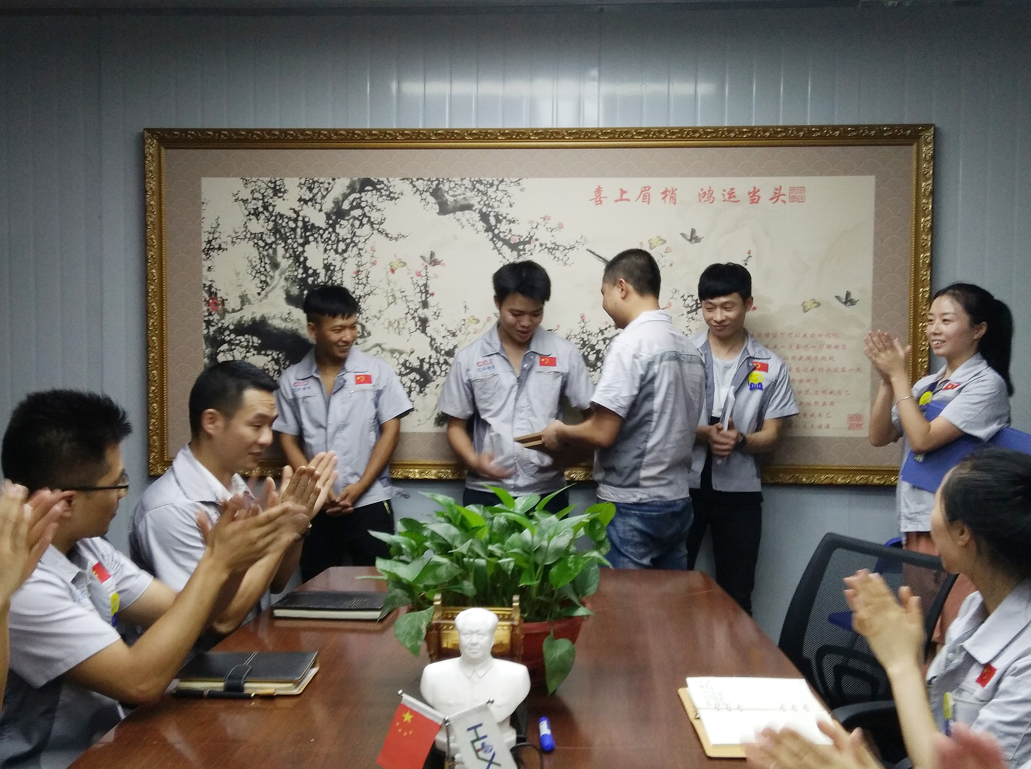 7月19日,匯利興(重慶)公司全體人員在匯利興學(xué)校召開6月份月度會(huì)議。會(huì)議持續(xù)近兩小時(shí),現(xiàn)場(chǎng)氣氛十分熱烈,由行政部主管陳香草主持。 劍風(fēng)所指,所向披靡。會(huì)議開始前,主持人陳香草帶領(lǐng)大家移步匯興文化廠地,整肅衣冠 ,對(duì)匯興人倍加推崇的“三道文化”(孝道、商道、人道)鄭重地鞠躬,莊嚴(yán)宣誓企業(yè)精神“用情做人、用心做事”,團(tuán)隊(duì)精神“忠誠團(tuán)結(jié)、勤奮進(jìn)取”,隨后由匯興兩位女精英擊士氣鼓,凝人心、鼓干勁;緊接著胡偉路總經(jīng)理授予采購部凝聚亮劍精神的一把寶刀,亮出氣勢(shì)、匯聚力量,砍前行荊棘、勇踏匯興征途。 圖一示意圖 圖二采購部家人手握寶刀合影圖 隨著家人們熱情高漲,會(huì)議開啟第二議程。全體人員隨主持人巡視倉儲(chǔ)A區(qū)長材區(qū)與倉儲(chǔ)B區(qū)配件區(qū)庫存及加工區(qū)面貌,集思廣益、廣納諫言并相互監(jiān)督面貌的保持。 圖三示意圖 作為掛牌企業(yè)(股票代碼:839258),匯利興長期以來,一直重視新鮮血液的注入和人才的引進(jìn),截止今日匯利興從之前的幾個(gè)人變成現(xiàn)在的幾十人,團(tuán)隊(duì)力量逐步增強(qiáng),為行業(yè)貢獻(xiàn)力量愈發(fā)強(qiáng)大。會(huì)議開啟第三議程-新員工入職歡迎儀式,物控部徐主管為新員工頒發(fā)紀(jì)念品。 徐主管為新員工頒發(fā)紀(jì)念品示意圖 為了增強(qiáng)企業(yè)凝聚力,表彰先進(jìn),樹立楷模,激勵(lì)員工奮發(fā)向上,形成人人爭當(dāng)先進(jìn),人人為公司發(fā)展做貢獻(xiàn)的行為,實(shí)現(xiàn)持續(xù)有效的激勵(lì)機(jī)制和企業(yè)良好傳統(tǒng),會(huì)議發(fā)起第四個(gè)議程——表彰儀式,對(duì)6月份在工作中表現(xiàn)突出的優(yōu)秀團(tuán)隊(duì)和個(gè)人給予表彰。 優(yōu)秀團(tuán)隊(duì)工程部家人獲得者與張副總合影示意圖 月度之星周榮、李如洪家人與張副總合影示意圖 隨后部門負(fù)責(zé)人(徐主管、蒲經(jīng)理、熊經(jīng)理)作2018年度工作總結(jié),總結(jié)上半年工作及部門的得與失,有則改之無則加勉。談到各部門間配合密度,工作作風(fēng)及個(gè)人精神面貌等相關(guān)事宜。并隨即提到匯利興獨(dú)有的企業(yè)文化“家人”,匯興每一位同事都是彼此的家人,并肩作戰(zhàn)的家人,共筑匯興夢(mèng)的家人。 徐主管、蒲經(jīng)理、熊經(jīng)理作2018年度工作總結(jié)示意圖 會(huì)議最后,胡偉路總經(jīng)理作會(huì)議總結(jié)及未來展望。會(huì)上,胡偉路總經(jīng)理首先對(duì)三位負(fù)責(zé)人所作的發(fā)言,提出了新的總結(jié)及建議;其次,針對(duì)目前所存在的短板作出了相應(yīng)的指示并勉勵(lì)匯興人要學(xué)會(huì)總結(jié)、學(xué)會(huì)反思,這不僅是一種智慧,更是下次進(jìn)步的開端。并表示,匯利興團(tuán)隊(duì)至始至終都是最棒的團(tuán)隊(duì),永不言敗的團(tuán)隊(duì);因此要堅(jiān)信自己、相信自己,穩(wěn)扎每一步伐,向前沖! 圖四示意圖 最后,全體匯興人起立,整肅衣冠,擊士氣鼓并齊喊“為夢(mèng)想沖刺,我是匯利興的一名戰(zhàn)士”,整個(gè)會(huì)場(chǎng)環(huán)繞著吶喊聲,現(xiàn)場(chǎng)激情澎湃、士氣高昂、振奮人心。
