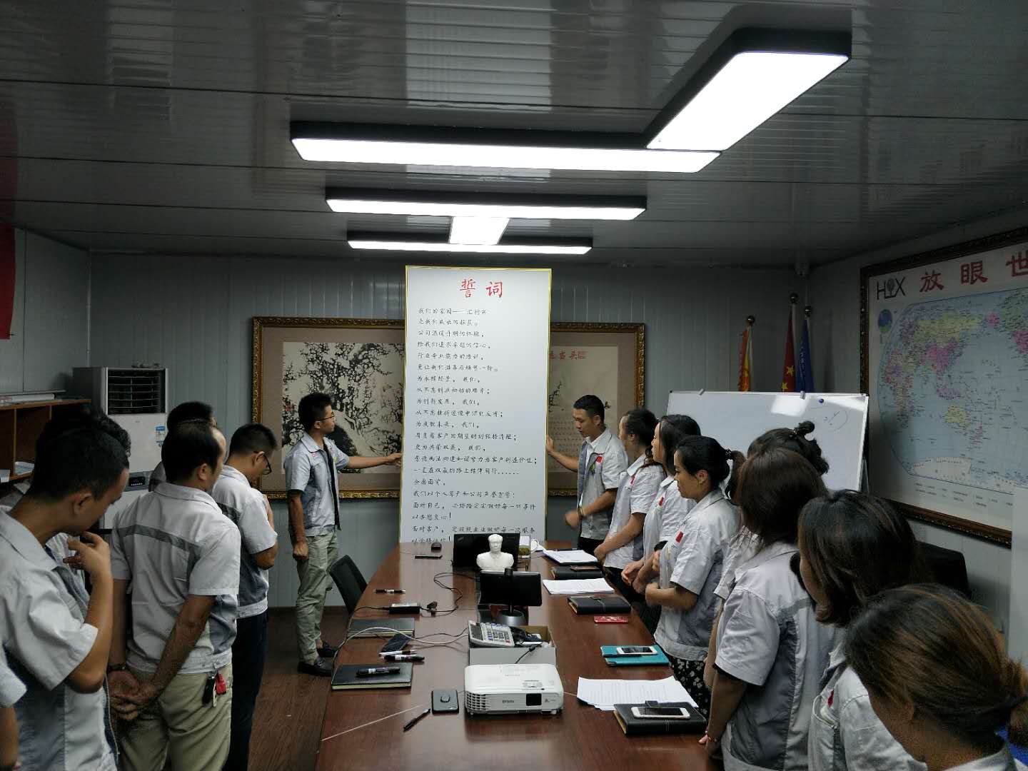 敢于做先行者,開天下萬物之先河。8月31日晚,我司精英們集體在匯利興學校開展隆重而莊嚴的宣誓會議,并在誓詞上簽署自己的名字,同匯利興一起共前行,正如誓詞所言“我們的家園-匯利興,是我們成長的搖籃......以個人的尊嚴和公司聲譽宣誓,面對自己,必踏踏實實做好每一件事情,以告慰良心;面對客戶,定兢兢業(yè)業(yè)做好每一次服務,以詮釋誠信”。不忘初心,一路前行,匯利興始終秉承著“用情做人,用心做事”的企業(yè)理念,踏實而務實的做好每一件事,忠誠團結(jié)、勤奮進取。 昔日百戰(zhàn)多,勇破萬重關(guān)。匯利興無堅不摧的鋼鐵戰(zhàn)士,萬眾一心的精英團隊,個個都激情昂揚,鏗鏘有力的寫下自己的名字......寫下這份責任、這份擔當,因為心中有夢想、肩上有責任,成功的光芒也會不斷照亮著前方,指引道路;永不言敗是我們不變的信念,在奮斗的堅實腳步中,以超常的智慧,以不達目的誓不罷休的精神,全力以赴、勇往直前,相信我們的目標定會闊步前進!