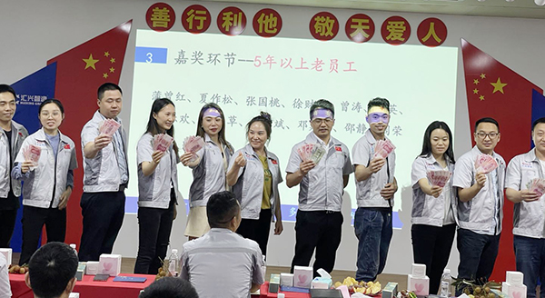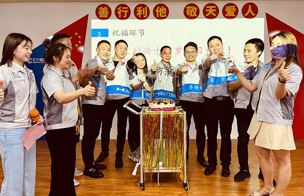 老員工代表夏佐松發(fā)表感言。夏經(jīng)理表示對于我而言,公司就是我的家,五年、十年這不是簡單的數(shù)字,是我對家的愛,是我藏于心中的一份情,同時十年也是匯利興一段光輝的歷程?;叵雱傔M匯利興的面貌再到今天,公司發(fā)生了質(zhì)的飛躍,十年匯利興人共同的奮斗,十年不懈的探索與實踐,十年的積累與沉淀,更是離不開領(lǐng)導的決策和大家的努力,也正是因為有這樣一群人在公司領(lǐng)導的帶領(lǐng)下,不斷助推著公司前行,突破!咱們的家才會越來越優(yōu)秀!在此,再次祝賀公司十周年生日快樂! 總部及各分子公司送祝福及慶祝十周年生日。隨著一曲歡快的生日音樂正式拉開十周年慶典儀式,董事長及各分子公司對重慶工廠的聲聲祝福,讓在場的每一個人都激動萬分,處處洋溢著滿滿的熱情,處處見證了重慶十年的奮斗歷程!中層管理人員共同點燃十根蠟燭,象征著匯利興重慶工廠業(yè)績蒸蒸日上、鴻運相伴永久,隨后全體匯利興人一起唱響生日歌,一起慶祝重慶十周年生日快樂!