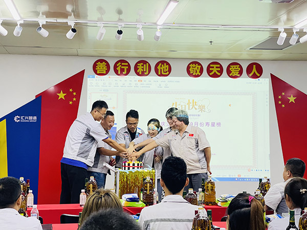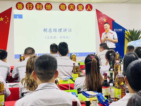 與時(shí)光握手,與歲月言和。成長(zhǎng)不期而遇,用真切的祝福拉開(kāi)壽星們的生日會(huì),不僅讓壽星們的生日過(guò)得更有意義,也使每一位員工都能切身的感受到公司的溫暖和領(lǐng)導(dǎo)的用心,也讓每個(gè)人所經(jīng)歷的平凡歲月里,都可以連續(xù)發(fā)生不一樣的驚喜。再次祝福壽星們生日快樂(lè)! 會(huì)議第五項(xiàng),胡偉路總經(jīng)理講話。首先胡總經(jīng)理感嘆時(shí)光飛逝,歲月如梭,驀然回首,已到初秋之際,2021年僅剩下僅有的100多天,在這攻堅(jiān)的三月里,全體員工仍需拿出“紅軍不怕遠(yuǎn)征難 萬(wàn)水千山只等閑”的民族氣概,朝著我們的目標(biāo)拿出我們的士氣卯足勁兒的向前沖;其二、胡總經(jīng)理向全體員工展示公司中秋禮品并解析禮品寓意(柴、米、油、鹽、醬、醋、茶),以生活中不可缺之的物品讓全體員工深刻感受到公司的關(guān)懷和關(guān)愛(ài),并從側(cè)面宣導(dǎo)全體員工在工作崗位中,對(duì)待同事要有溫度,對(duì)待工作要有態(tài)度;花若盛開(kāi),蝴蝶自來(lái),你若精彩,上天自會(huì)安排;其三、通過(guò)一則短視頻向全體員工宣導(dǎo)反哺之恩 、舐?tīng)僦?,進(jìn)一步勉勵(lì)全體員工要有一顆感恩的心,感恩身邊的人;其四、創(chuàng)立夢(mèng)想基金,鼓勵(lì)員工加大產(chǎn)值賦能,為公司為個(gè)人謀福利;同時(shí)也進(jìn)一步勉勵(lì)全體員工,“寶劍鋒從磨礪出,梅花香自苦寒來(lái)”,只要我們一起努力,相信我們一定會(huì)實(shí)現(xiàn)我們的目標(biāo),讓我們一起擼起袖子加油干!