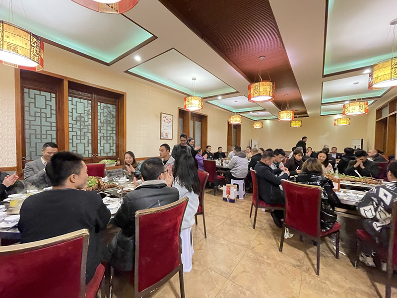 全體員工起立肩并肩,一起唱響“只要我們一起努力,相信我們一定會(huì)創(chuàng)造奇跡”,字里行間都激勵(lì)著在場(chǎng)每一位員工一定要奮勇前進(jìn),歌聲嘹亮,振奮人心! 伴隨時(shí)間的推移,也逐漸拉開了會(huì)議的下半場(chǎng),冬天里的第一只羊。公司用最貼心的方式向每一位員工表達(dá)著自己的愛,讓大家在寒冷的冬天,不再畏懼寒冷,將暖暖的祝福,送到了大家的眼前,融化在火熱的烤羊里。香味四溢的正宗的草原風(fēng)味烤全羊,經(jīng)過專業(yè)師傅的精心烤制,油汁慢慢的從金黃的羊肉中沁出,羊肉也因?yàn)榛鸬闹丝径兊慕瘘S,香氣四溢,讓大家一同體驗(yàn)了大口吃肉大口喝酒的豪放之情,讓大家感受到舌尖上的美食、味蕾的跳動(dòng),并訴說著從舌尖到心尖的蛻變,從走胃到走心的真情交流;大家圍坐在一起大快朵頤,席間談笑風(fēng)生,盡展妙趣,共同舉杯歡慶這美好時(shí)刻! 有一種浪漫叫并肩作戰(zhàn),有一種力量叫全力以赴,有一種果敢叫奮不顧身。無(wú)論前方等待著什么,我們?nèi)耘f拼搏向上,拿出我們最佳的狀態(tài),永遠(yuǎn)堅(jiān)定地向目標(biāo)邁進(jìn),相信所有堅(jiān)韌不拔的努力,都會(huì)得到勝利的回饋!加油!