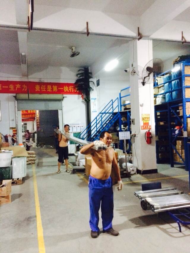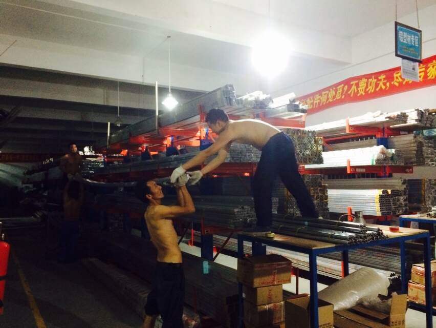 怎么玩耍;但是我司的車間里依然緊張忙碌著。由于我司自行開模的工業(yè)鋁型材今日到貨八十余萬元,滿滿的兩大卡車鋁材要馬上卸貨。我司戰(zhàn)士二話不說,加班加點(diǎn),開足馬力,努力工作著。
